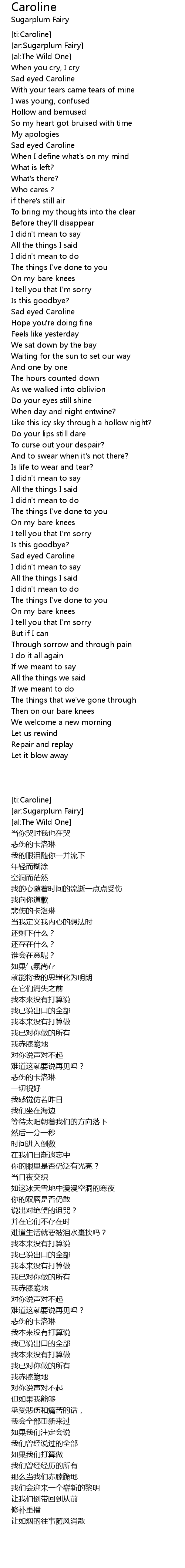 | [02:15.56] | 悲伤的卡洛琳 |