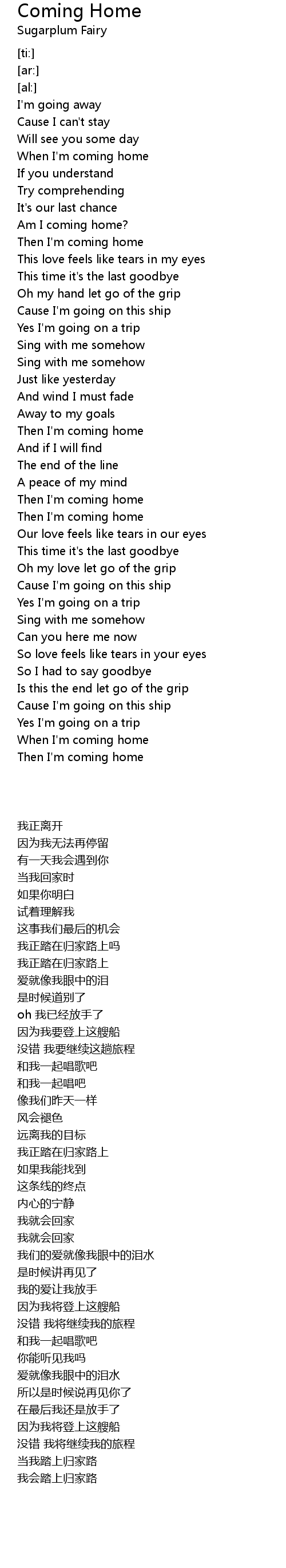 Then I'm coming home |