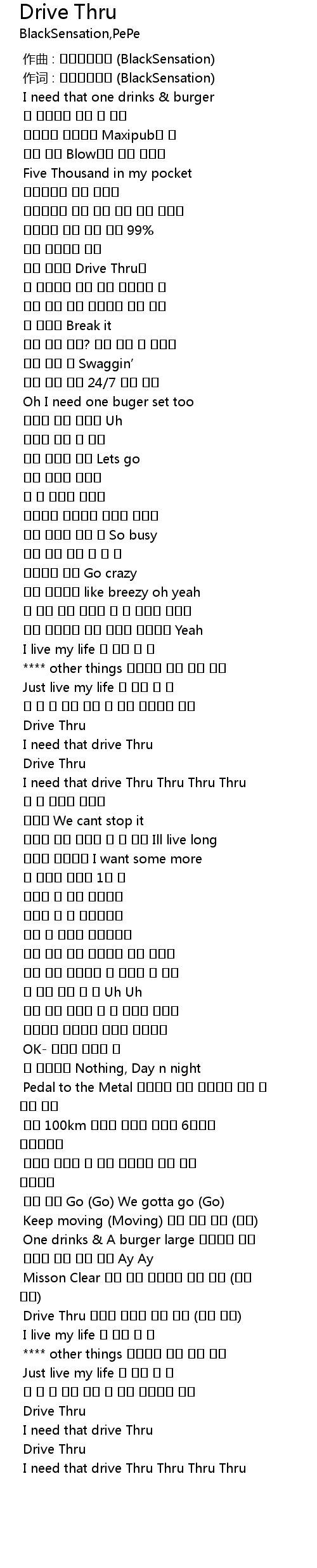 | [02:49.373] | Drive Thru 바퀴는 멈추지 않고 돌아 (돌아 돌아) |