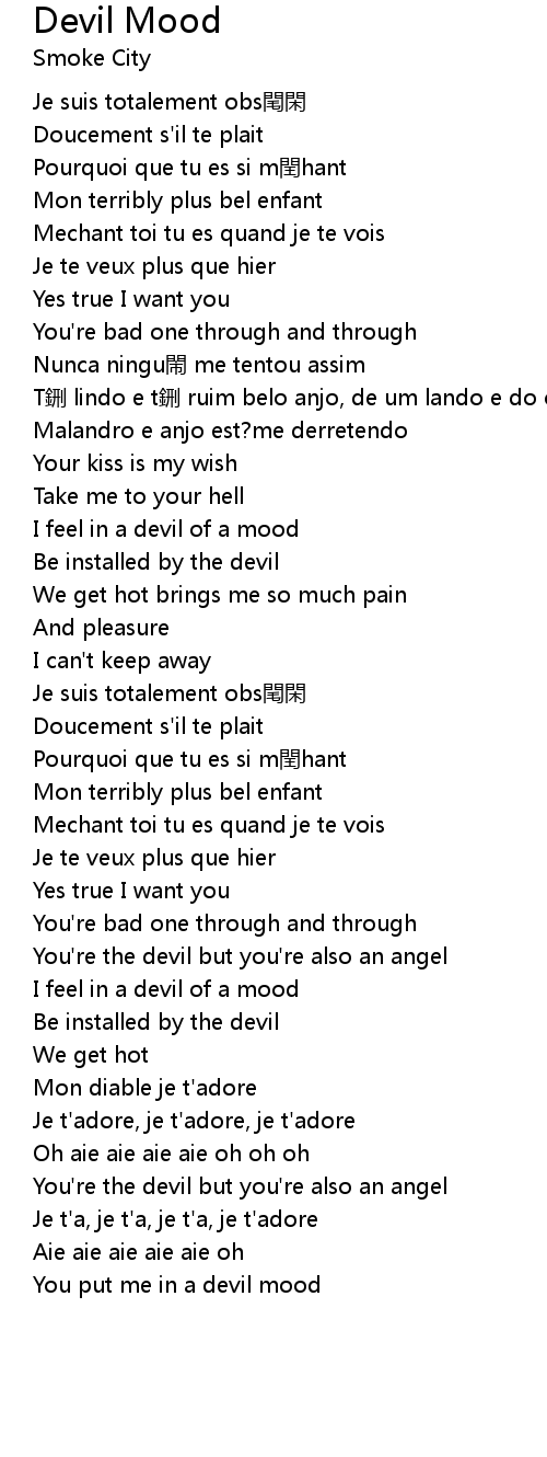 | You put me in a devil mood |