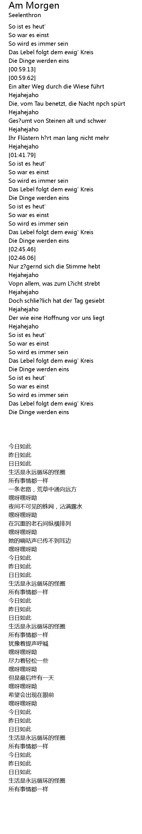 | [03:23.69] | Das Lebel folgt dem ewig' Kreis |