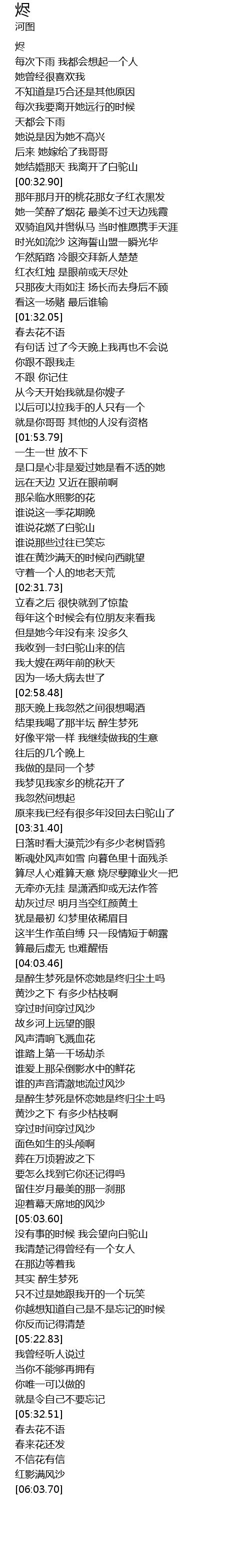 | [05:05.58] | 没有事的时候 我会望向白驼山 |