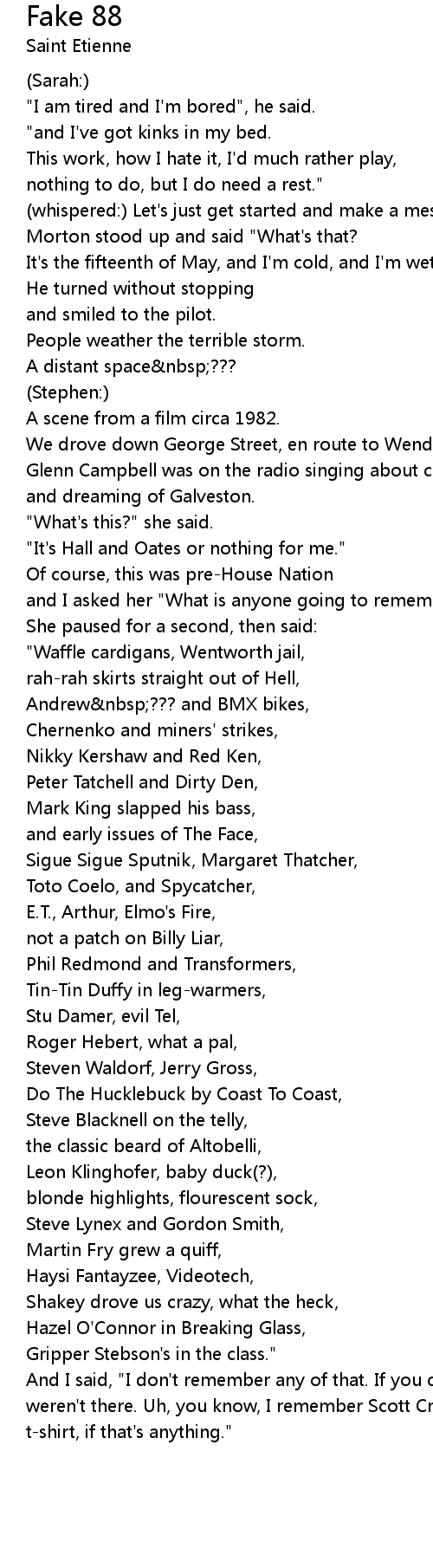 And I said, "I don't remember any of that. If you can remember the '80s you weren't there. Uh, you know, I remember Scott Crolla in his Furry Freak Brothers t-shirt, if that's anything." |