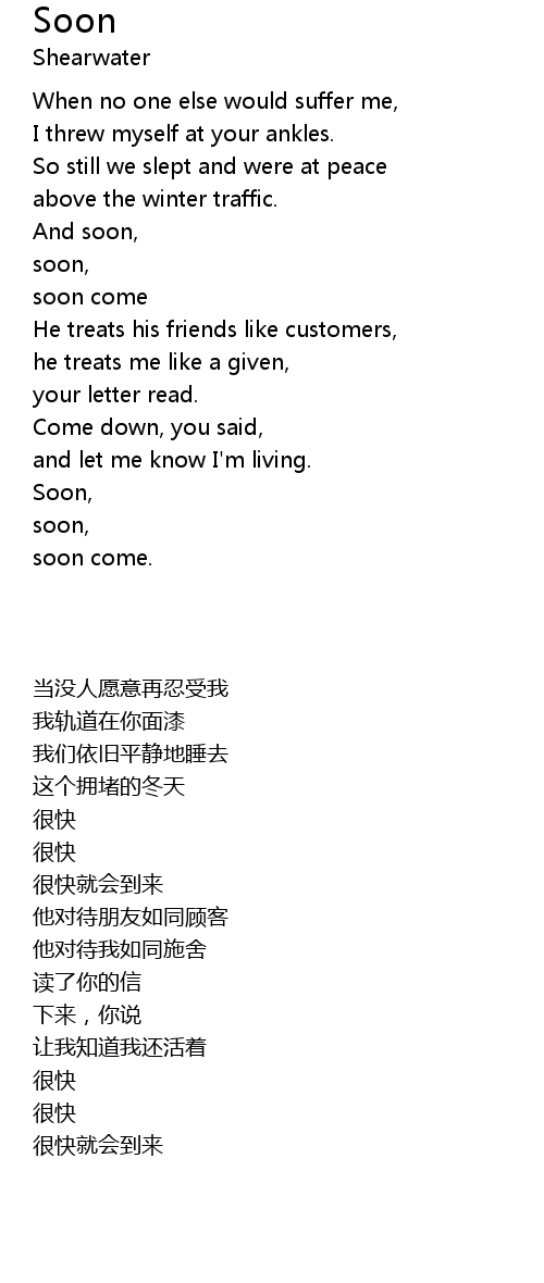 | [00:43.78] | soon come |