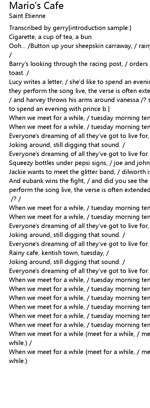 Ooh... /Button up your sheepskin carraway, / rainy cafe, kentish town, tuesday. / |