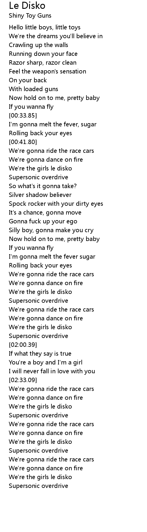 We're gonna ride the race cars |
