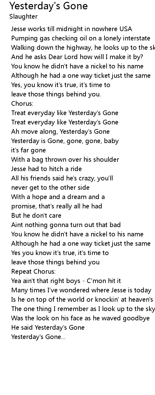 | Ah move along, Yesterday' s Gone | |