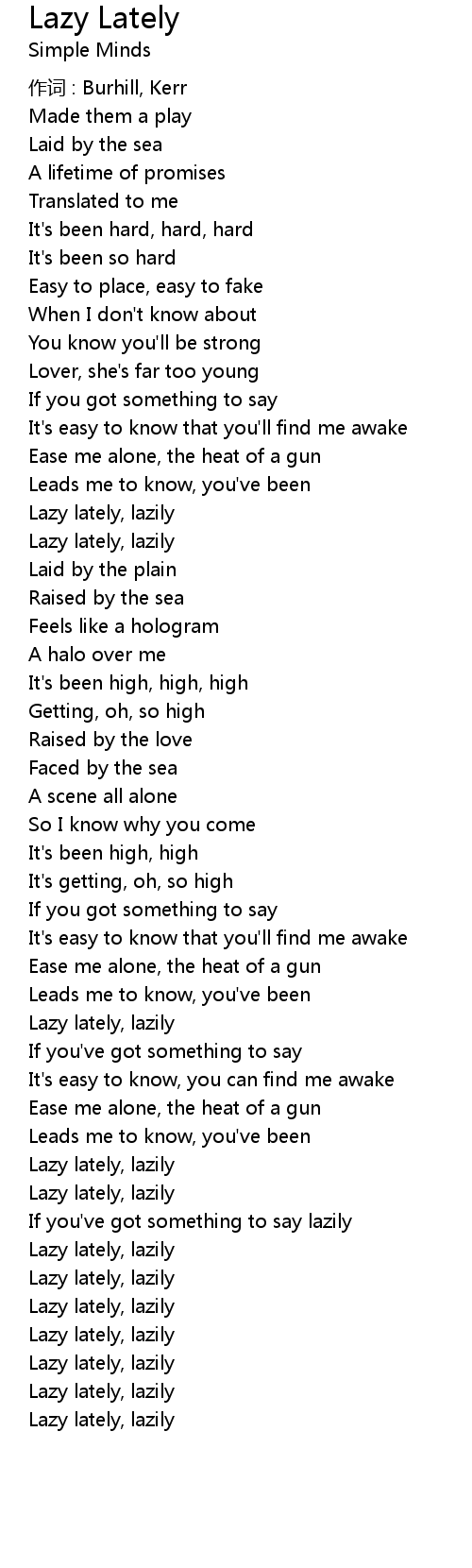 | Lazy lately, lazily |