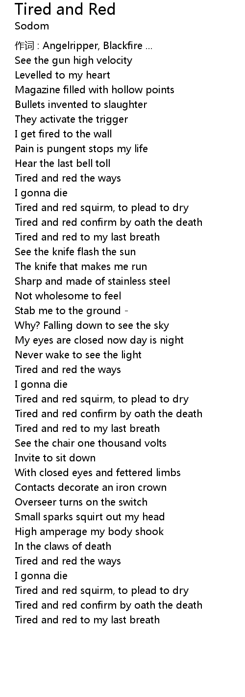 | Tired and red to my last breath | |