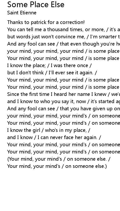 your mind, your mind, your mind / is some place else. / |