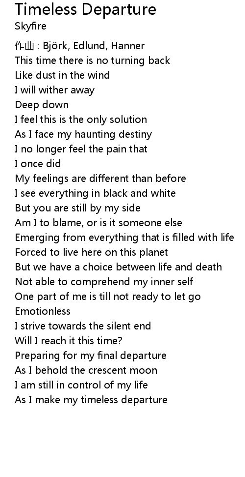 | As I make my timeless departure |
