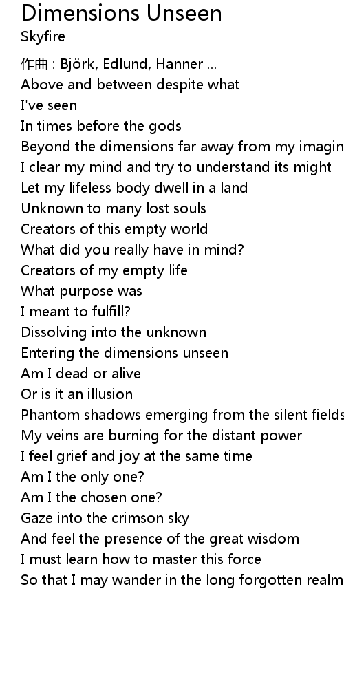 | 歌曲 | Dimensions Unseen |