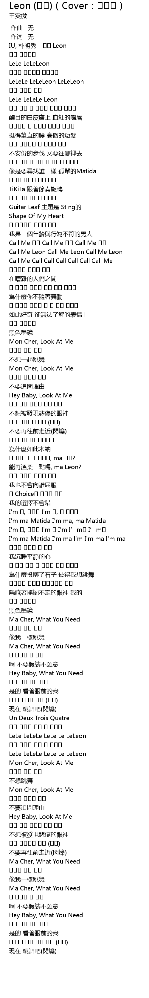 | [00:01.81] | IU, 朴明秀 - 레옹 Leon |