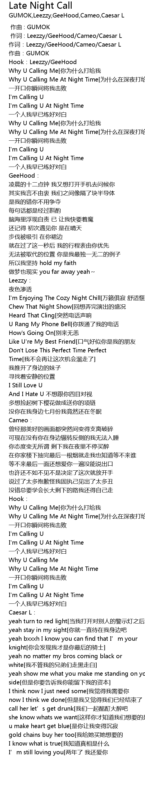 | [00:03.33] | 作词:Leezzy/GeeHood/Cameo/Caesar L |