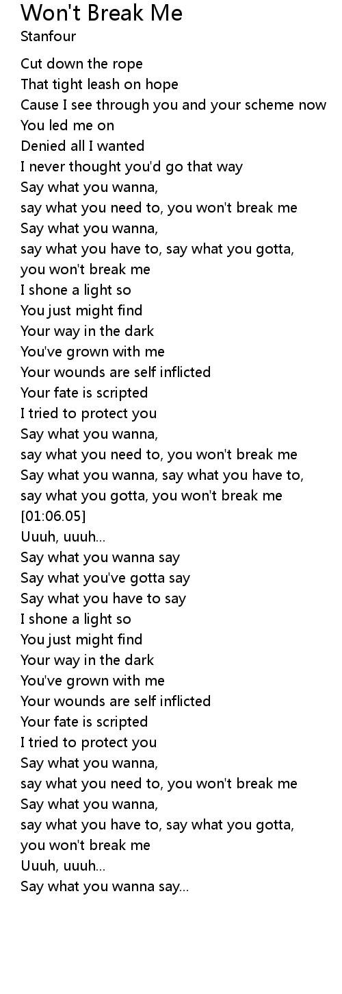 say what you need to, you won't break me |