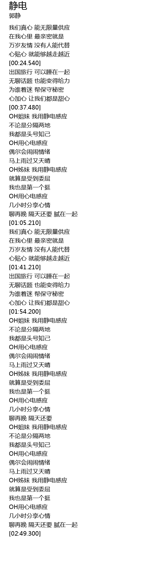 | [02:34.900] | OH姊妹 我用静电感应 |