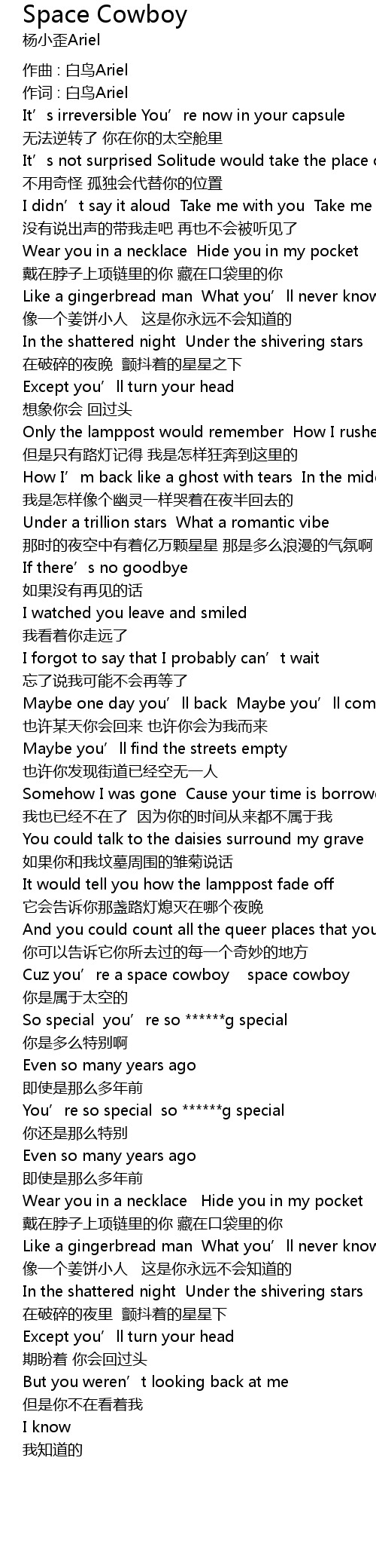 | 作词 : 白鸟Ariel | |