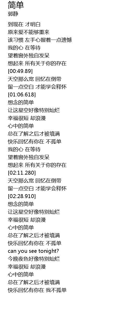 | [01:22.579] | xīn zhōng de jiǎn dān |