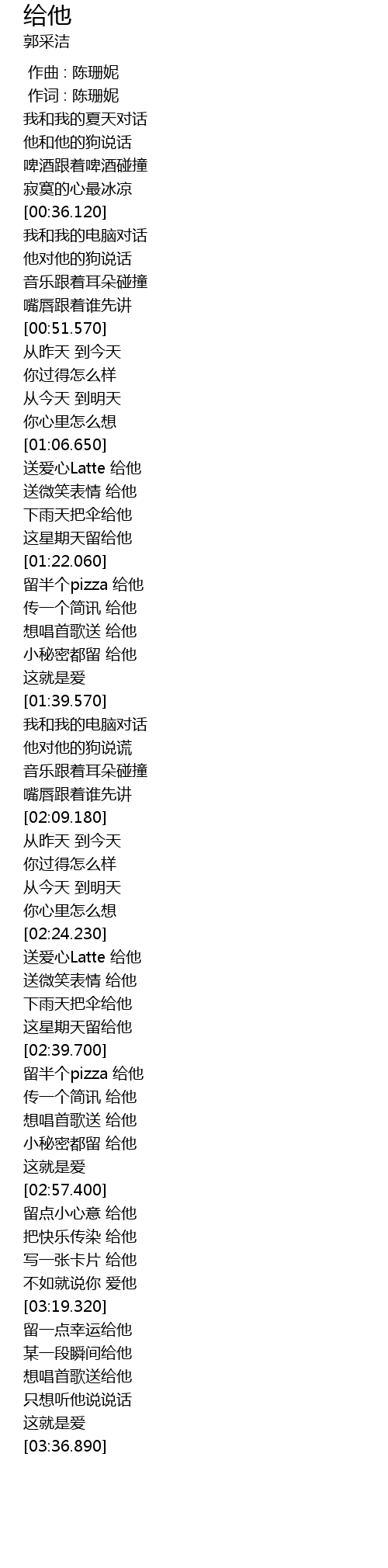| [02:25.400] | sòng ài xīn Latte gěi tā |