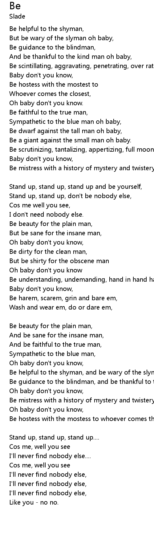 And be thankful to the kind man oh baby, |
