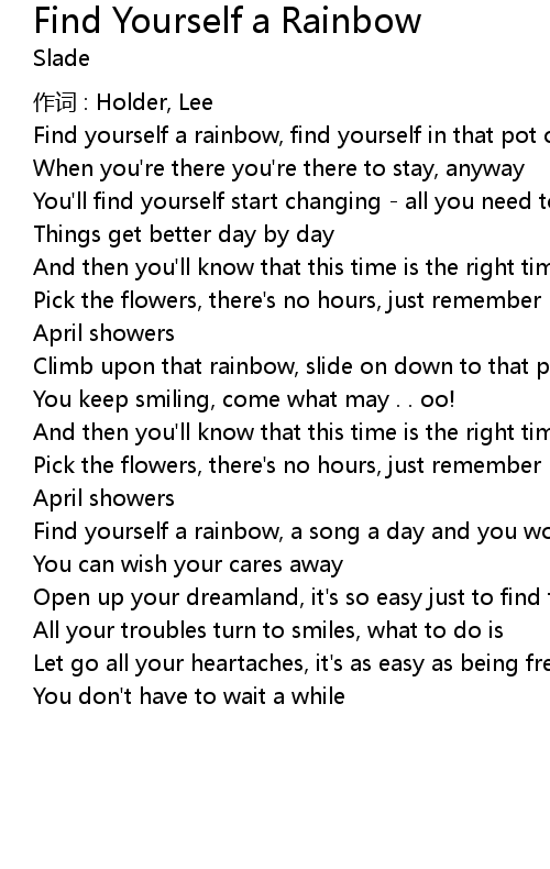 | Find yourself a rainbow, find yourself in that pot of gold | |