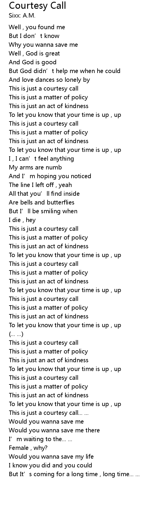 | 歌曲 | Courtesy Call |