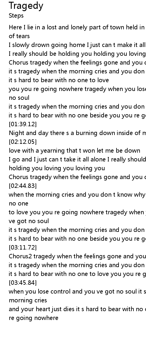 | [02:40.63] | Chorus tragedy when the feelings gone and you can t go on it s tragedy |