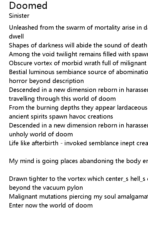 | Enter now the world of doom |
