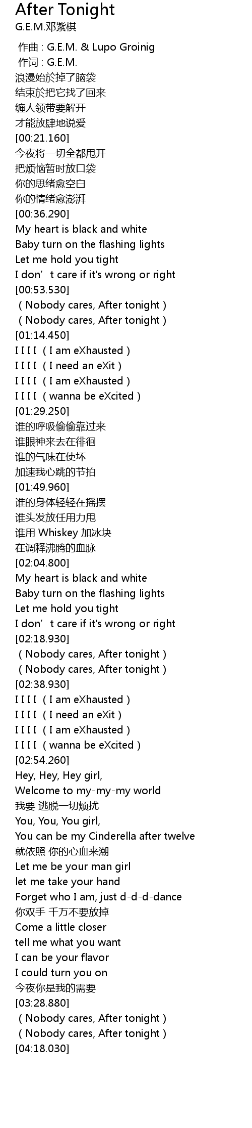 | [01:04.460] | (Nobody cares, After tonight) |