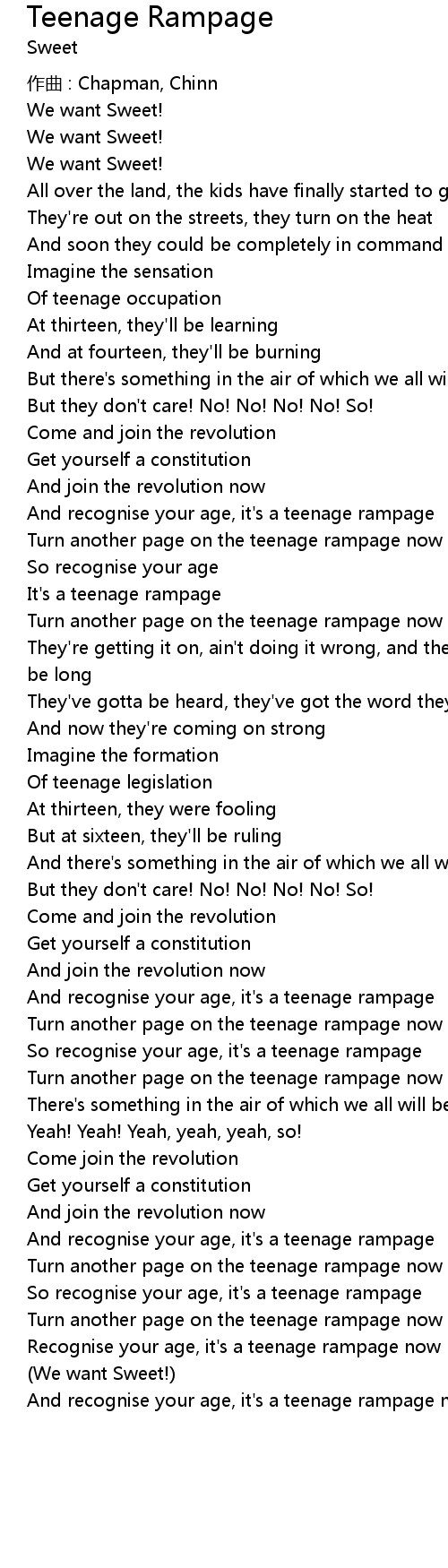 | It' s a teenage rampage | |