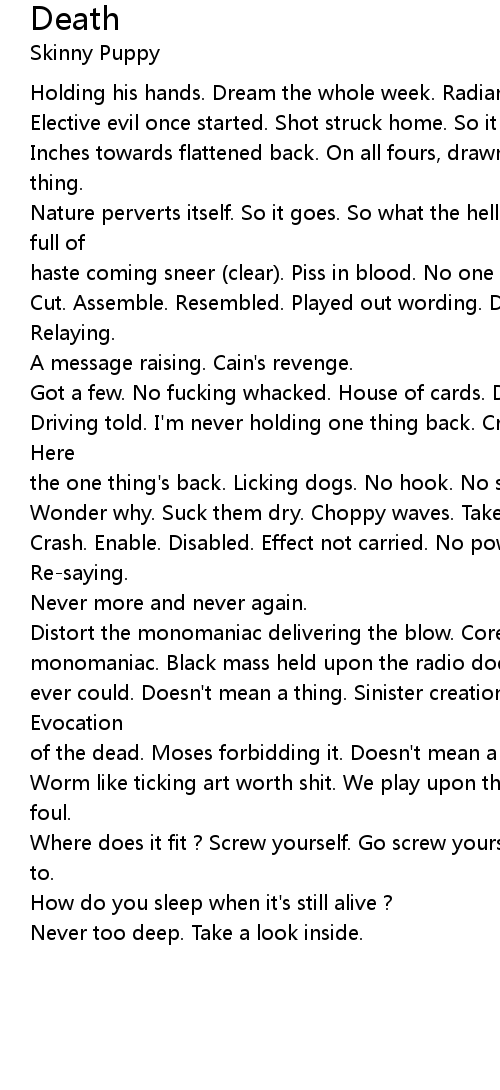 ever could. Doesn't mean a thing. Sinister creation doesn't mean a thing. Evocation |