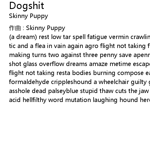 | (a dream) rest low tar spell fatigue vermin crawling in livid gnawsfasting on tic and a flea in vain again agro flight not taking fastingon deception in the making turns two against three penny save apenny worth crystal marble powder shot glass overflow dreams amaze metime escapes me mirror shades what should be flight not taking resta bodies burning compose ears of rock guilty grey formaldehyde crippleshound a wheelchair guilty grey a wheelchair hounds you asshole dead palseyblue stupid thaw cuts the jaw hell piss fuck head rest pure acid hellfilthy word mutation laughing hound hereafter stupid clown you asshole |