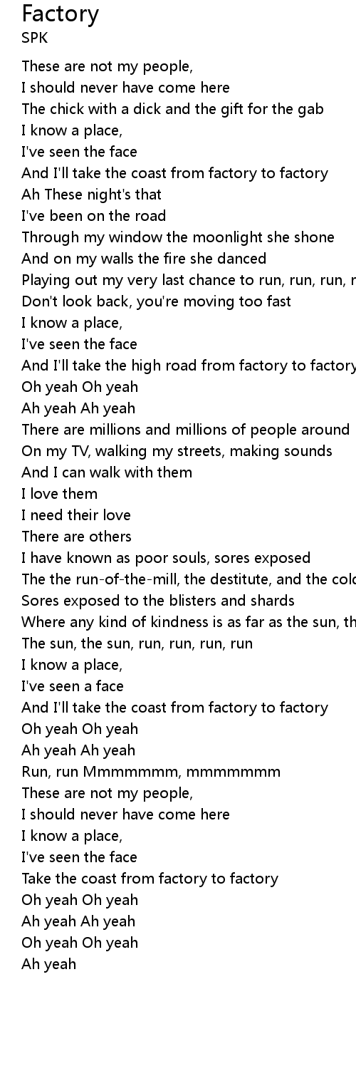 | And I'll take the high road from factory to factory | |