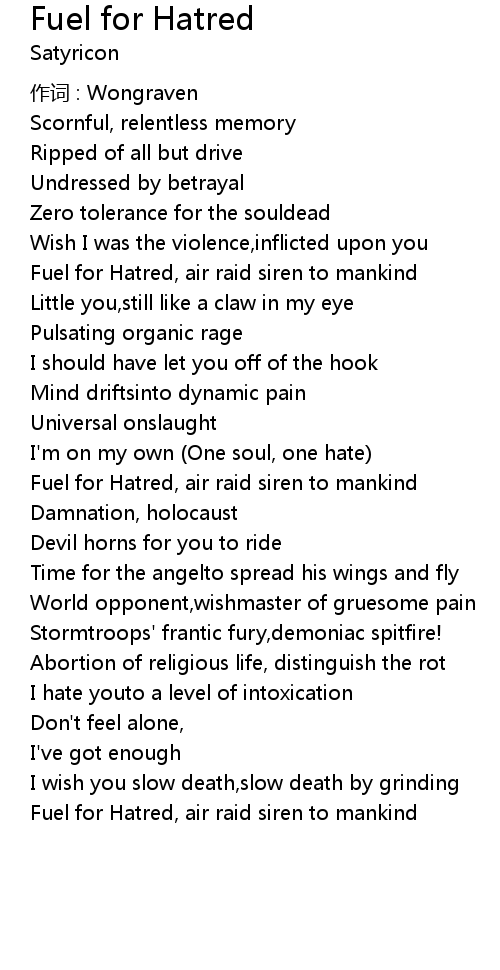 | Fuel for Hatred, air raid siren to mankind |