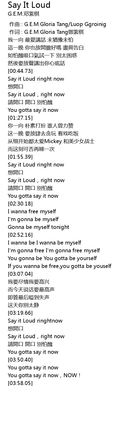 | [00:59.37] | Say it Loud, right now |