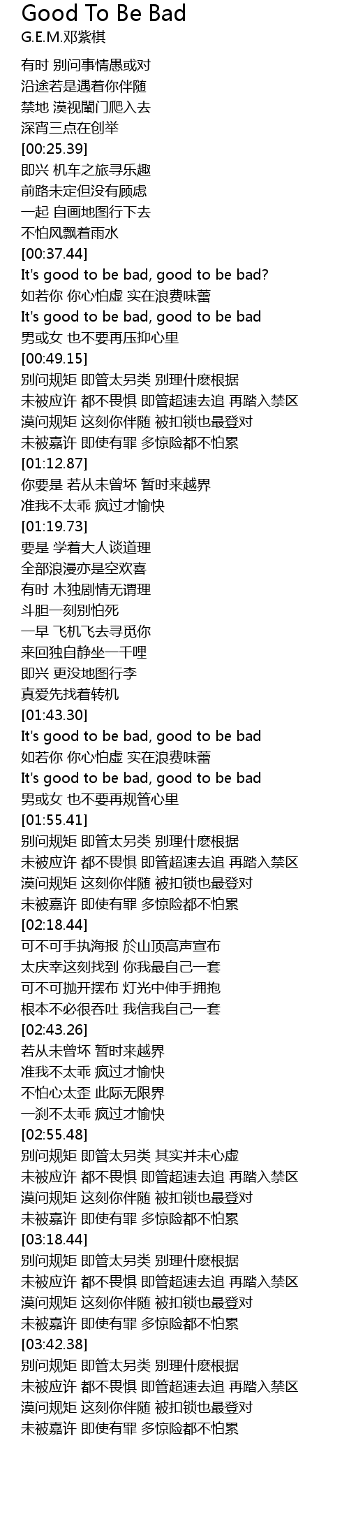 | [00:37.88] | It's good to be bad, good to be bad? |