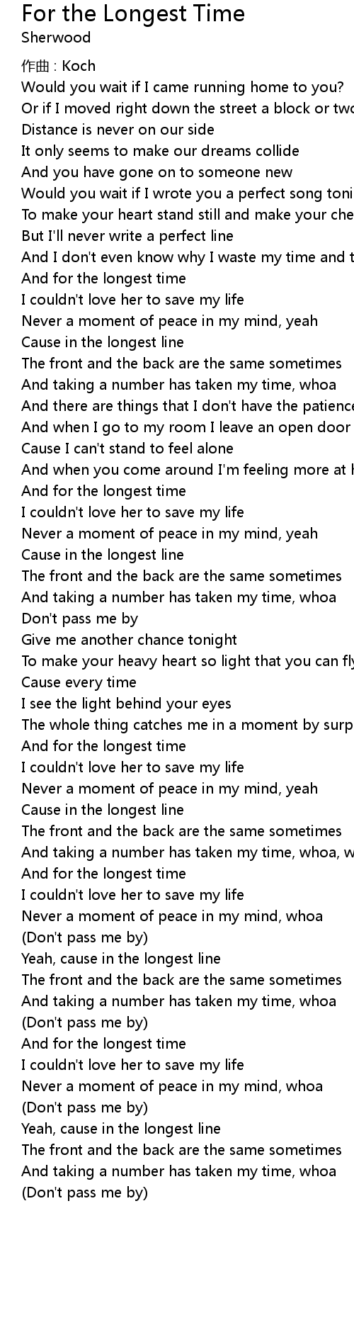 | 歌曲 | For the Longest Time |
