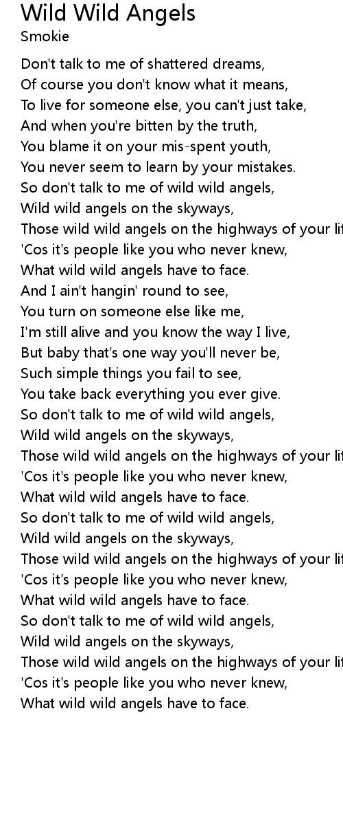 So don't talk to me of wild wild angels, |