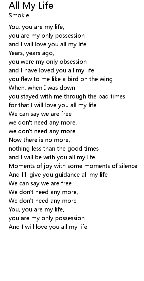 and I will love you all my life |