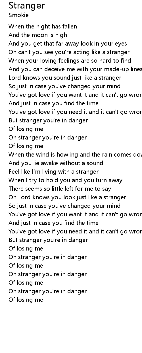 But stranger you're in danger