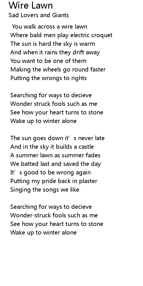 | You walk across a wire lawn | |