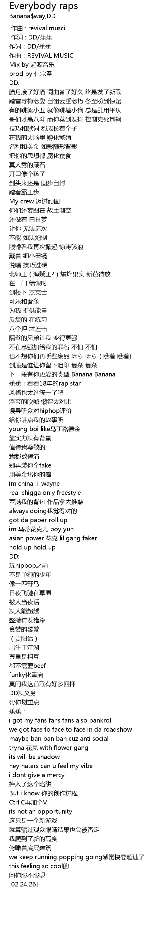 | [01:04.34] | 蕉蕉:看看18年的rap star |