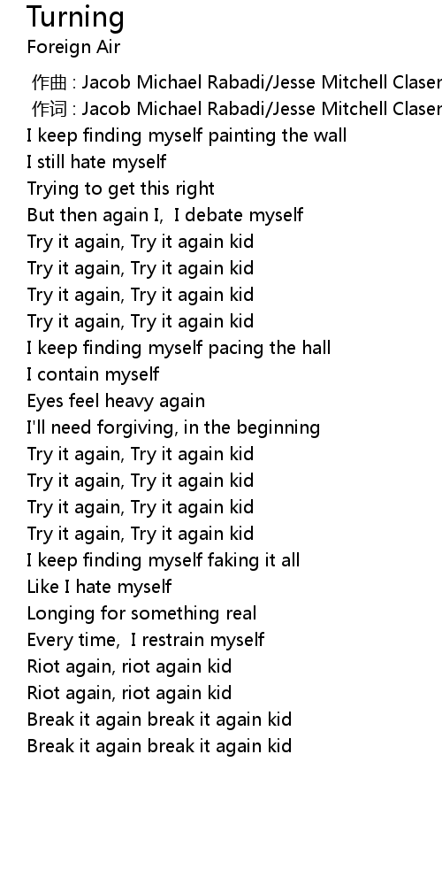 | [00:01.000] | zuò cí : Jacob Michael Rabadi Jesse Mitchell Clasen |