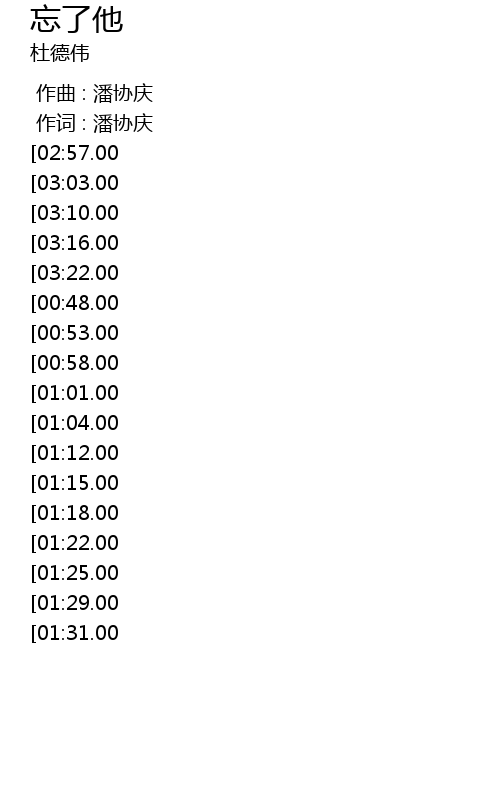 | [03:28.00][02:57.00][01:36.00][00:14.00] | 忘了他 别再想他 |