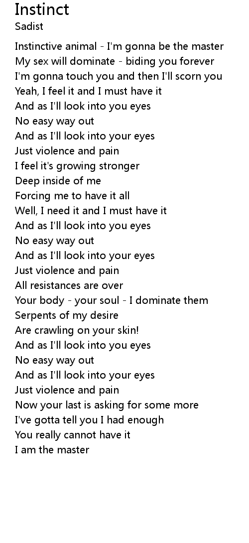| Instinctive animal - I'm gonna be the master | |