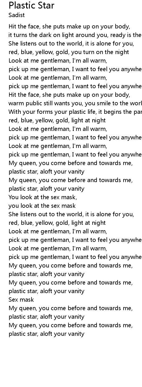 | plastic star, aloft your vanity | |