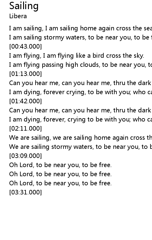| [02:43.000] | We are sailing, we are sailing home again cross the sea. |