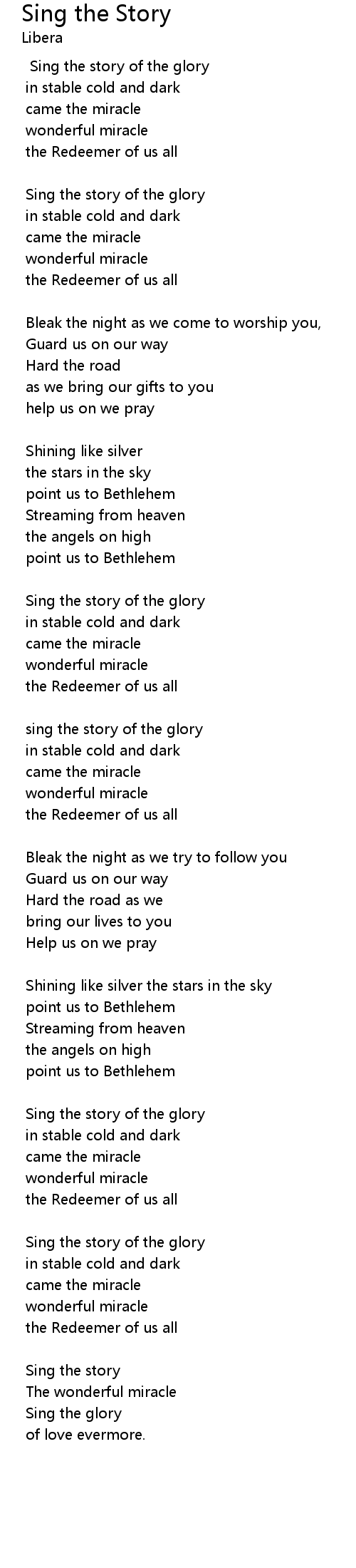 Sing the story of the glory |