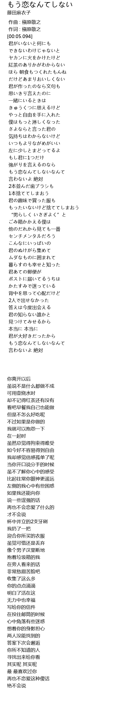 | [01:56.050] | 再也不会恋爱了什么的 |