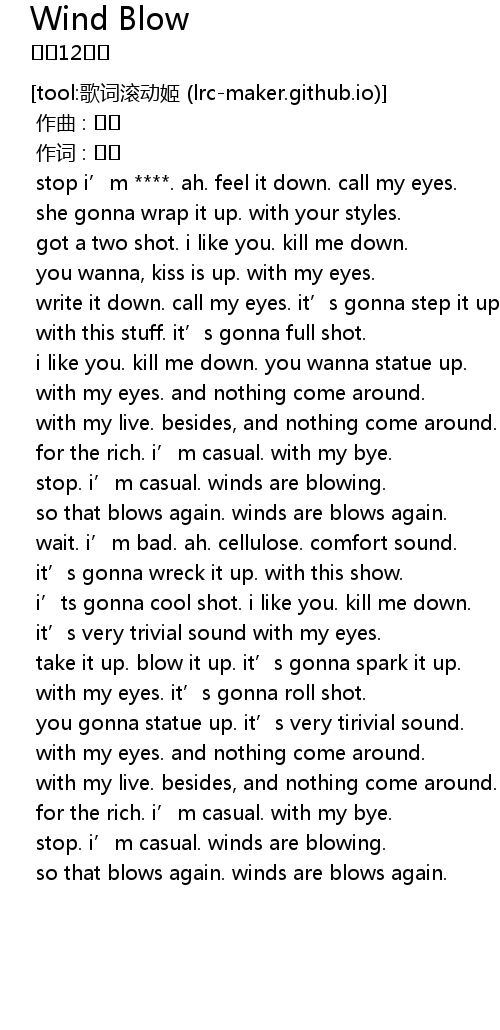 | [00:12.722] | stop i’m ****. ah. feel it down. call my eyes. |